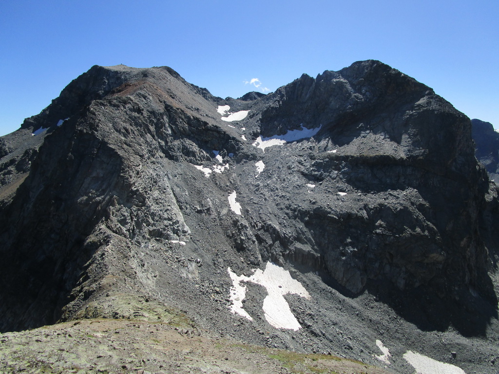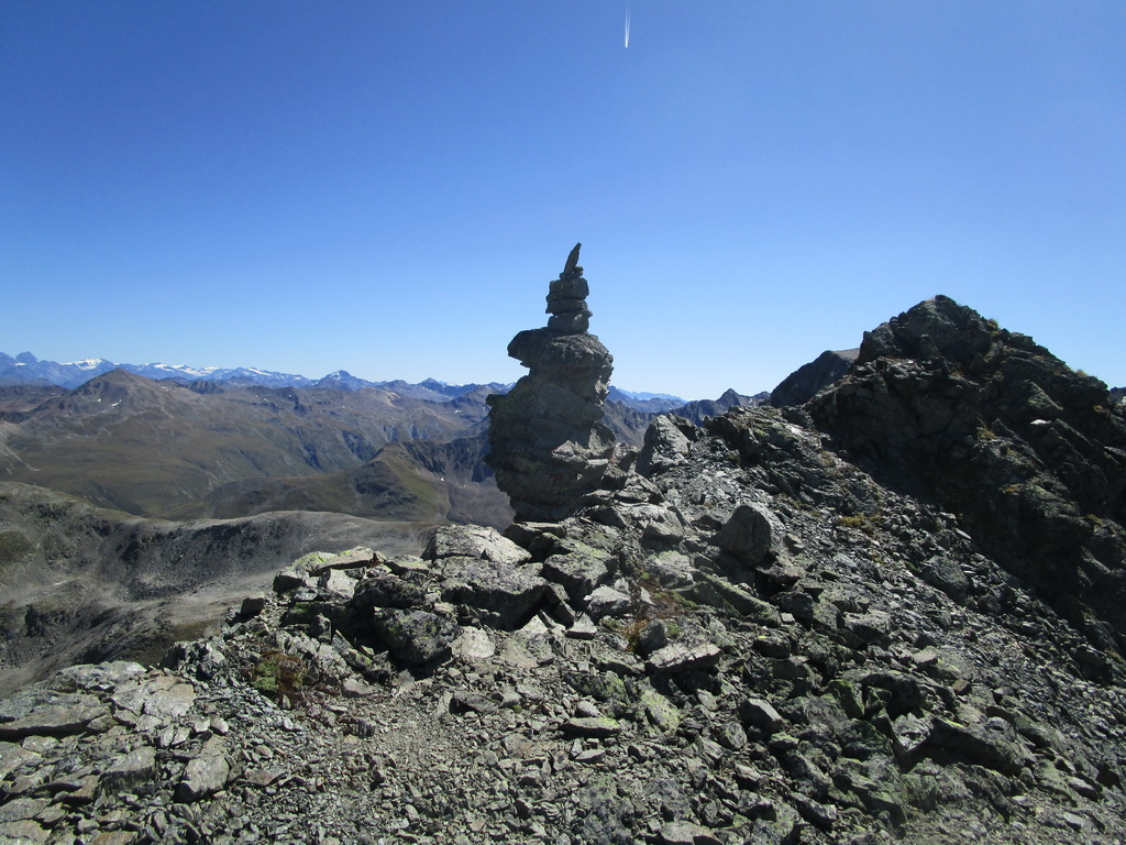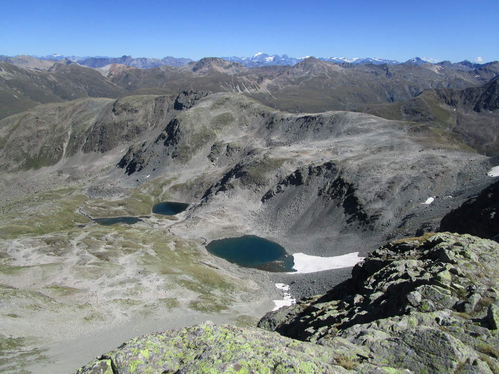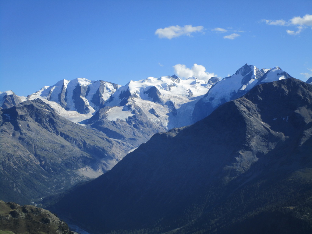 Obehnem zopár postarších Švajčiarov, vypočujem si nejaké tie závistlivé poznámky a potom sa znovu ocitám v teréne mimo značiek a mimo ľudí. Vo Fuorcla Muragl schádzam zo značky a hrebeňom si to namierim na Piz Clux. Terén ma celkom púšťa, postupujem rýchlo a o chvíľu si už fotím výhľady z vrcholu. Odtiaľto ma čaká hrebeň na Piz Muragl. Opäť sa zadarilo aj keď trebalo aj popoliezať a z Muraglu sa teším super výhľadom. Na tomto kopci som už bol aj dvakrát v zime. Je známy svojími úžasnými výhľadmi na Berninské Alpy.