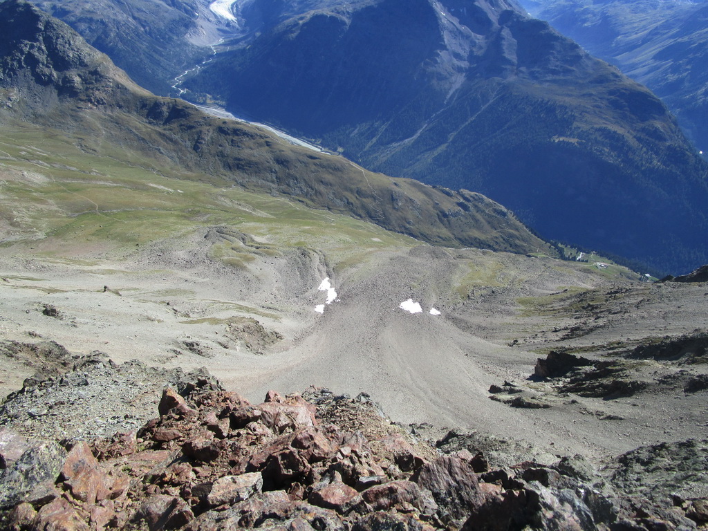 Aby som sa nevracal do rovnakej doliny tak zostupujem opačným smerom suťovinovým svahom smerom do Pontresiny. Tu už využijem čiastočnú znalosť terénu a traverzom sa dostávam ku chate Segantini. Toto miesto je taktiež známe úžasnými výhľadmi. Na chate dotankujem polku Coly a už ma čaká iba pohodový zostup až k autu. Zastavím sa ešte na Kryo v potoku a potom už zostúpim s pomocou paličiek až dole k autu...