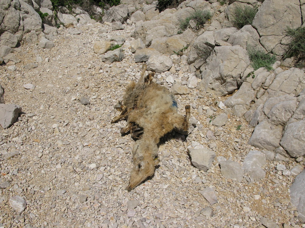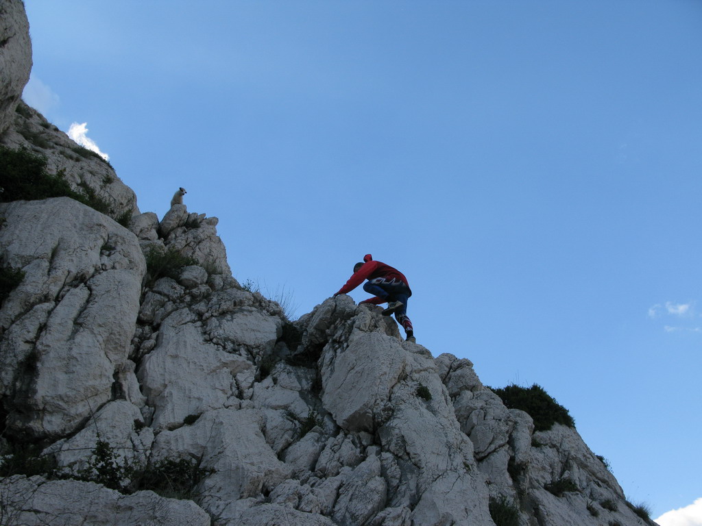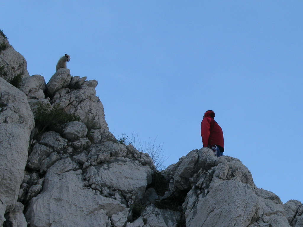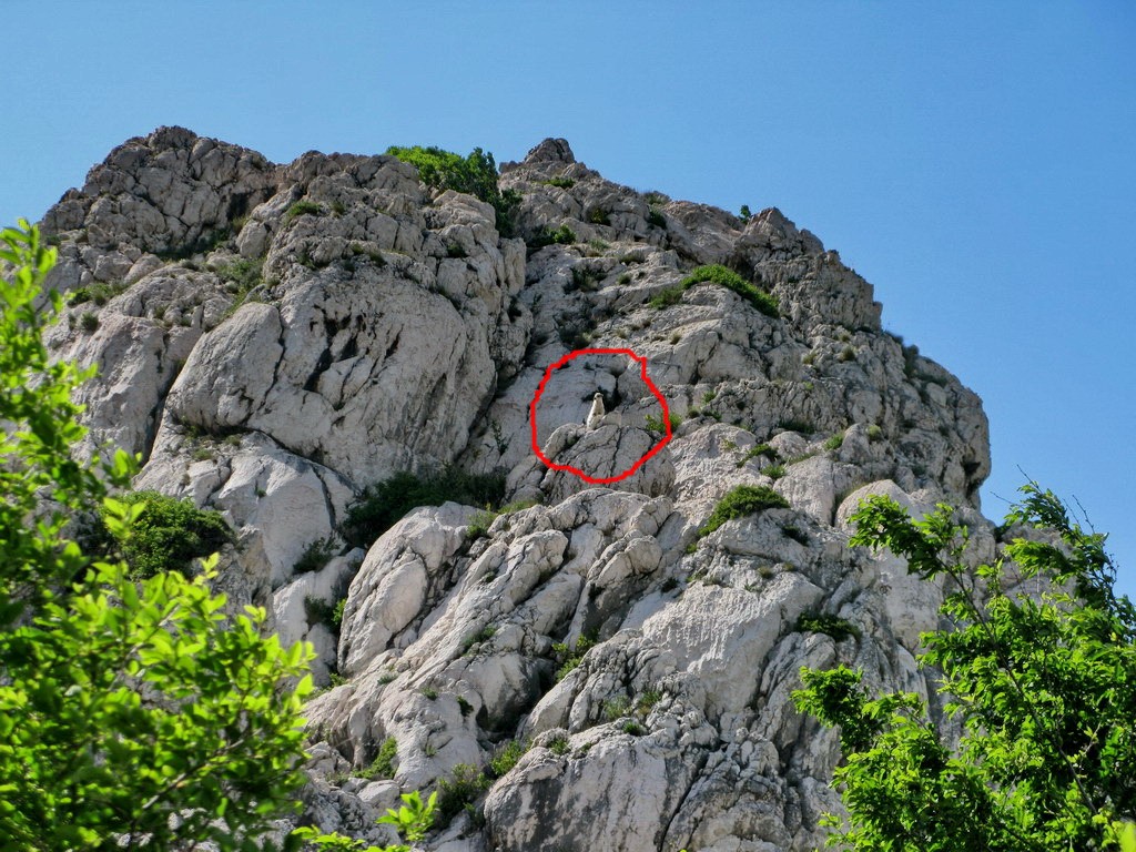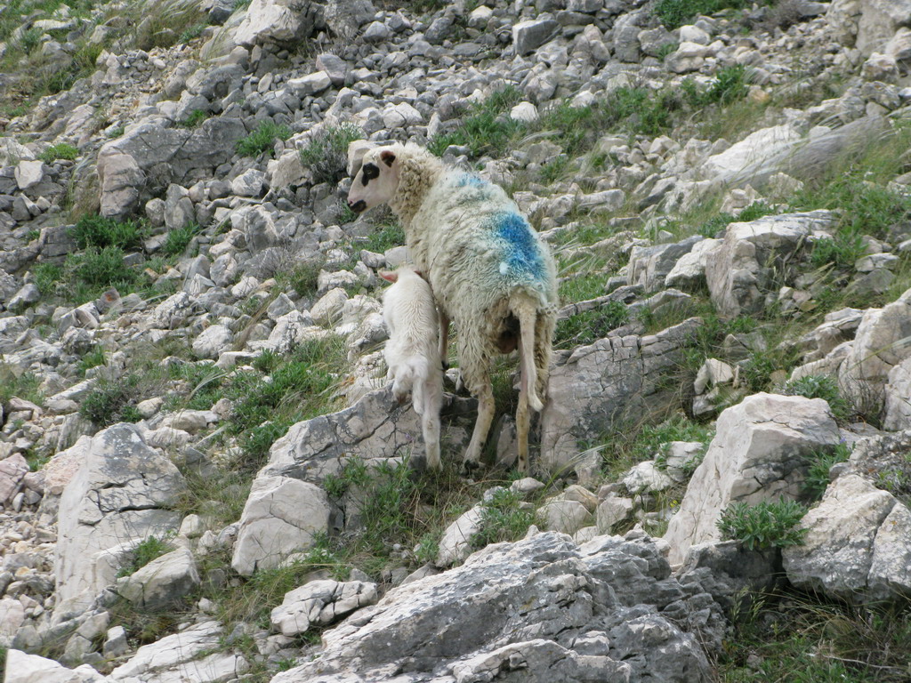 Nás ovce nezaujímajú, samozrejme pokiaľ sa nezačnú pásť ako táto v stene nad našimi hlavami a nezačnú nám púšťať kamene na hlavu. Potravy je tu pre ne málo a tie najchutnejšie kríčky a kvietky (videl som) rastú práve na tých najneprístupnejších miestach.