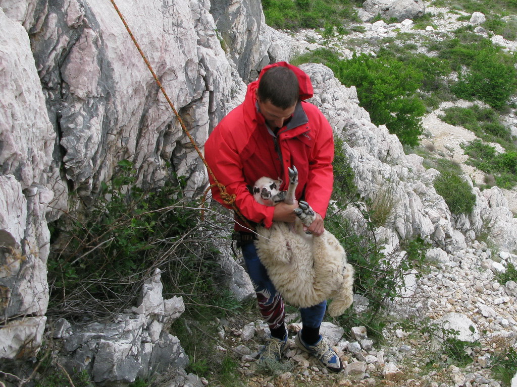 Vtom som za plošinkou na ktorej stála zbadal zlaňák. Partia, ktorá to tu čistí a odisťuje si ho zrejme pripravila na ďalšiu prácu. Zbehol som dole po lano. Ak som sa chcel dostať ku zlaňáku musel som okolo ovce. Tá sa zľakla a skočila dole...