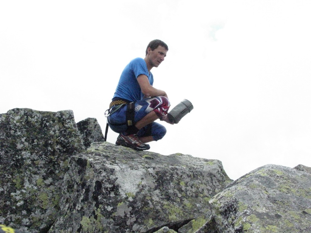 Na vrchole je pätica turistov. Hovoria inými jazykmi, hádam budú doma o slovensku dobre rozprávať... Zostupujem, som smädný, premýšľam, či bude na chate dačo na pitie. Podľa všetkého by mala byť ešte zavretá.
